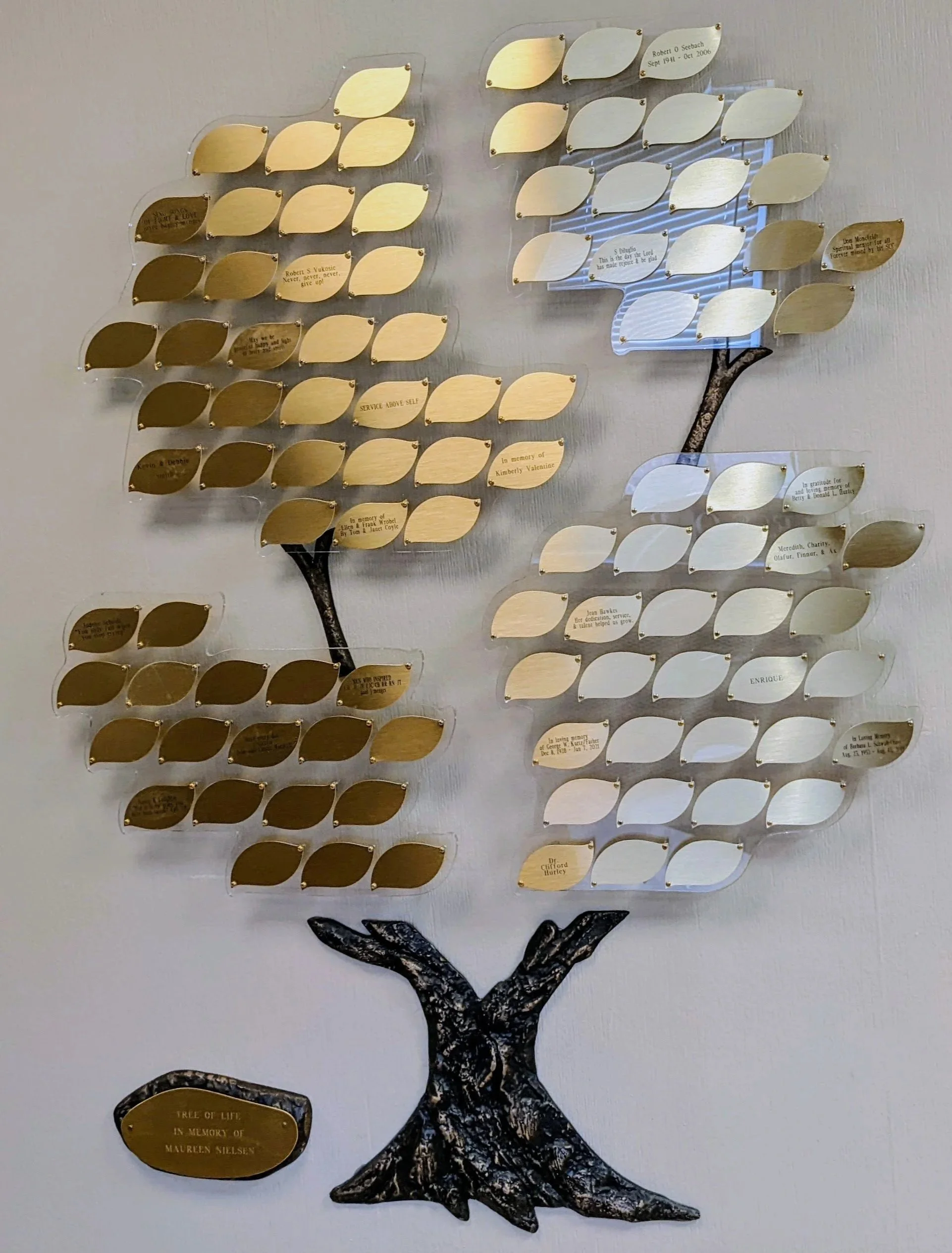 Maureen Nielsen Tree of Life: An early prison outreach volunteer and advocate, Maureen Nielsen was a live-in staff at Pearl House, our first women’s residence. The Maureen Nielsen Tree of Life pays tribute to Maureen. The tree is located inside of Nielsen House. A gift of $1,000 or more will be recognized with a leaf on the tree, which will be engraved with a name or phrase of your choice. Donate at left; select “Tree of Life” from Dropdown